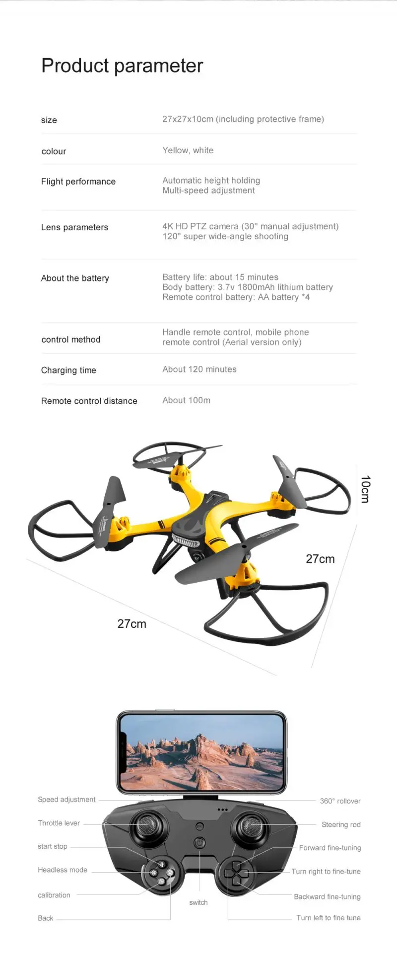 -This RC Drone is equipped with a large capacity modular battery of 1800mAh, can be used for 12-15 minutes after a full charging, easy to replace.