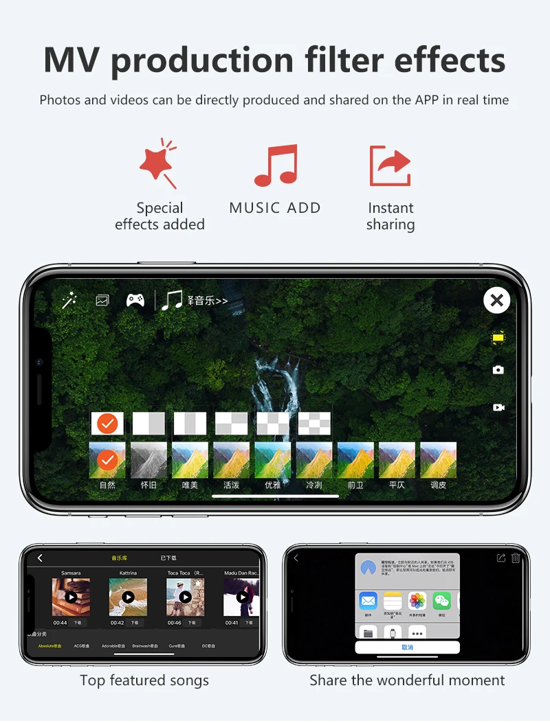 -With wifi function, you can connect APP, APK system to take photos, videos, and real-time transmission through mobile phone images.