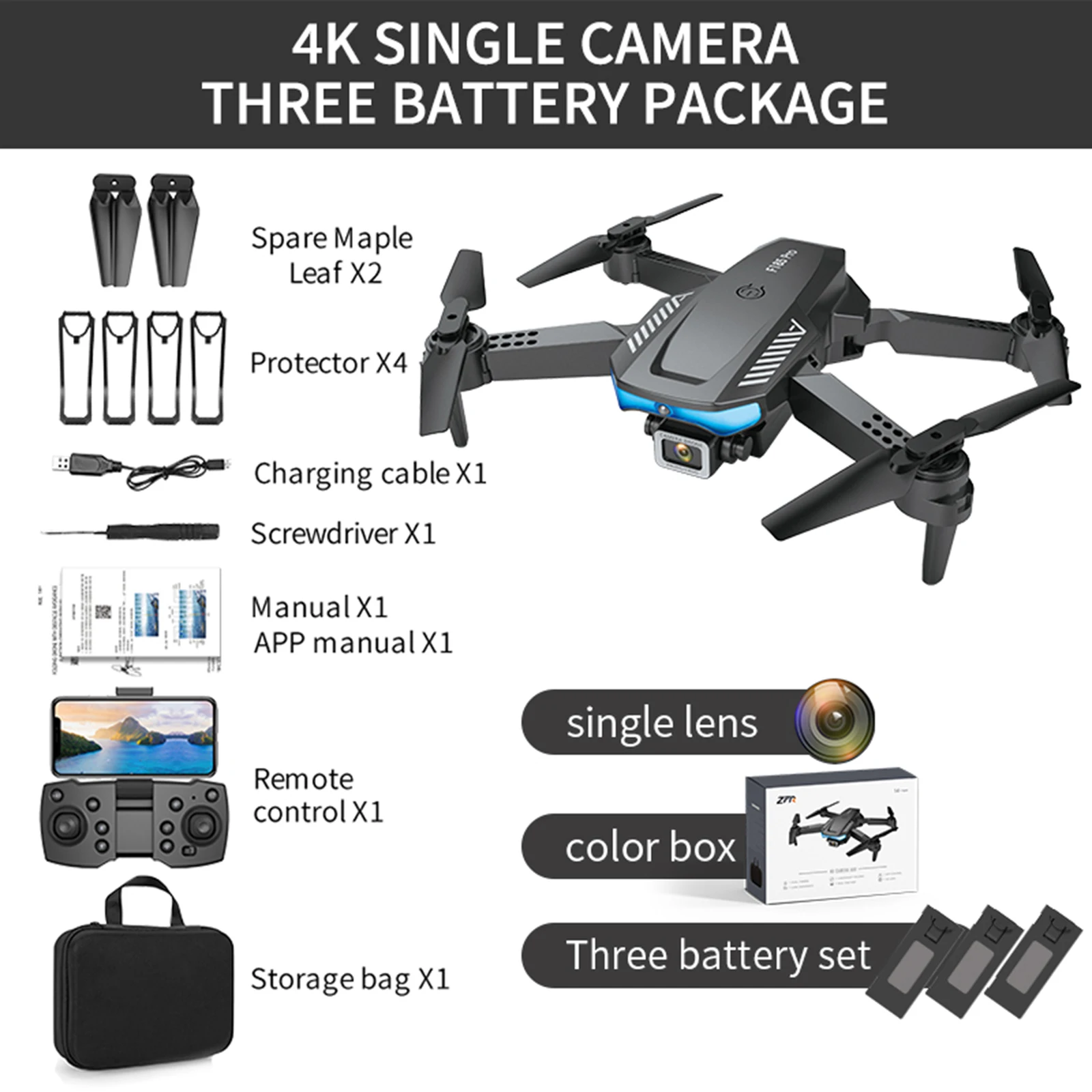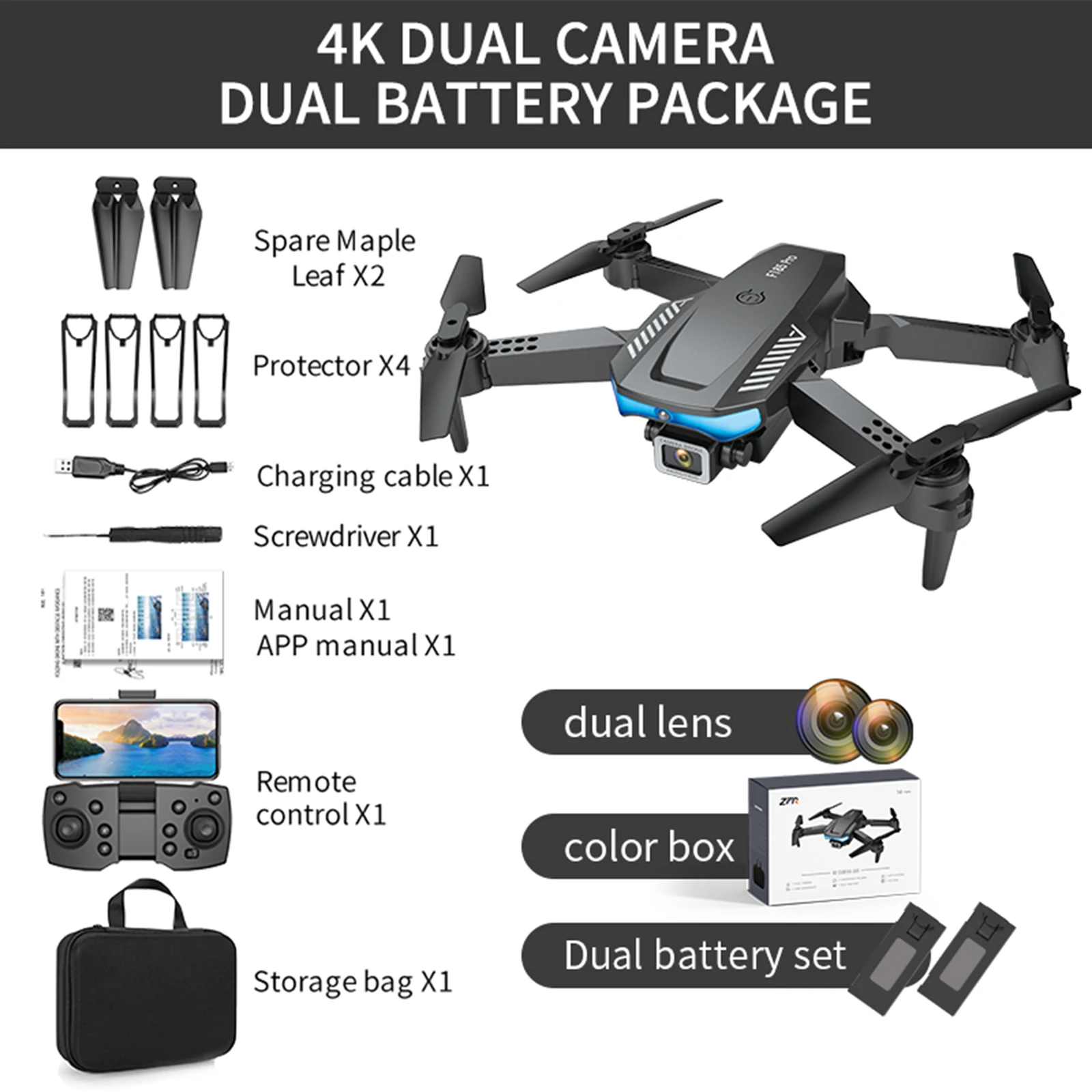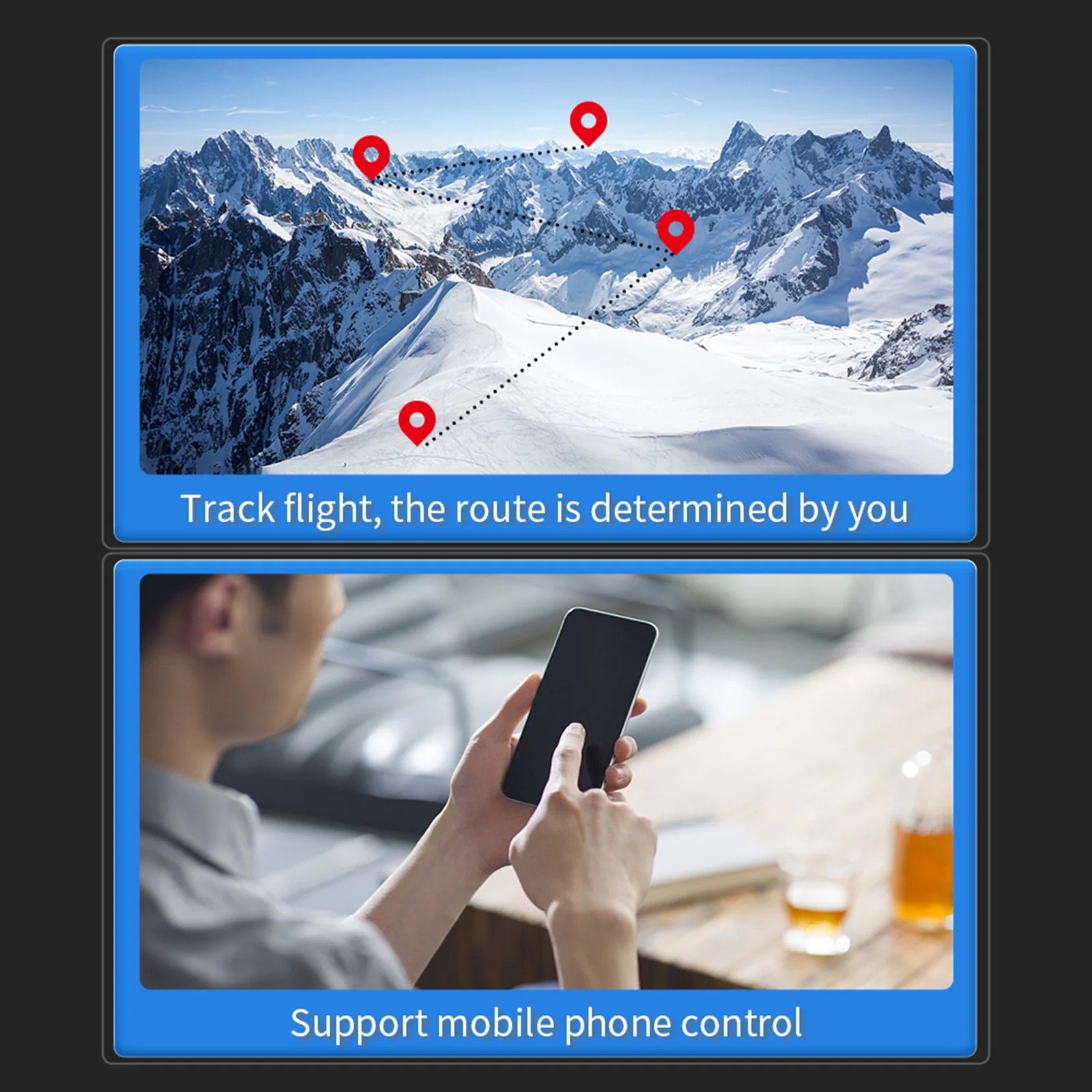 3. Built-in single/dual 4K camera, 4K dual front camera video resolution 2560*1440, bottom camera 2560*1440; 4K dual front camera photo resolution 4096*2016, bottom camera 4096*2016. It can capture stunning pictures and videos from the sky.