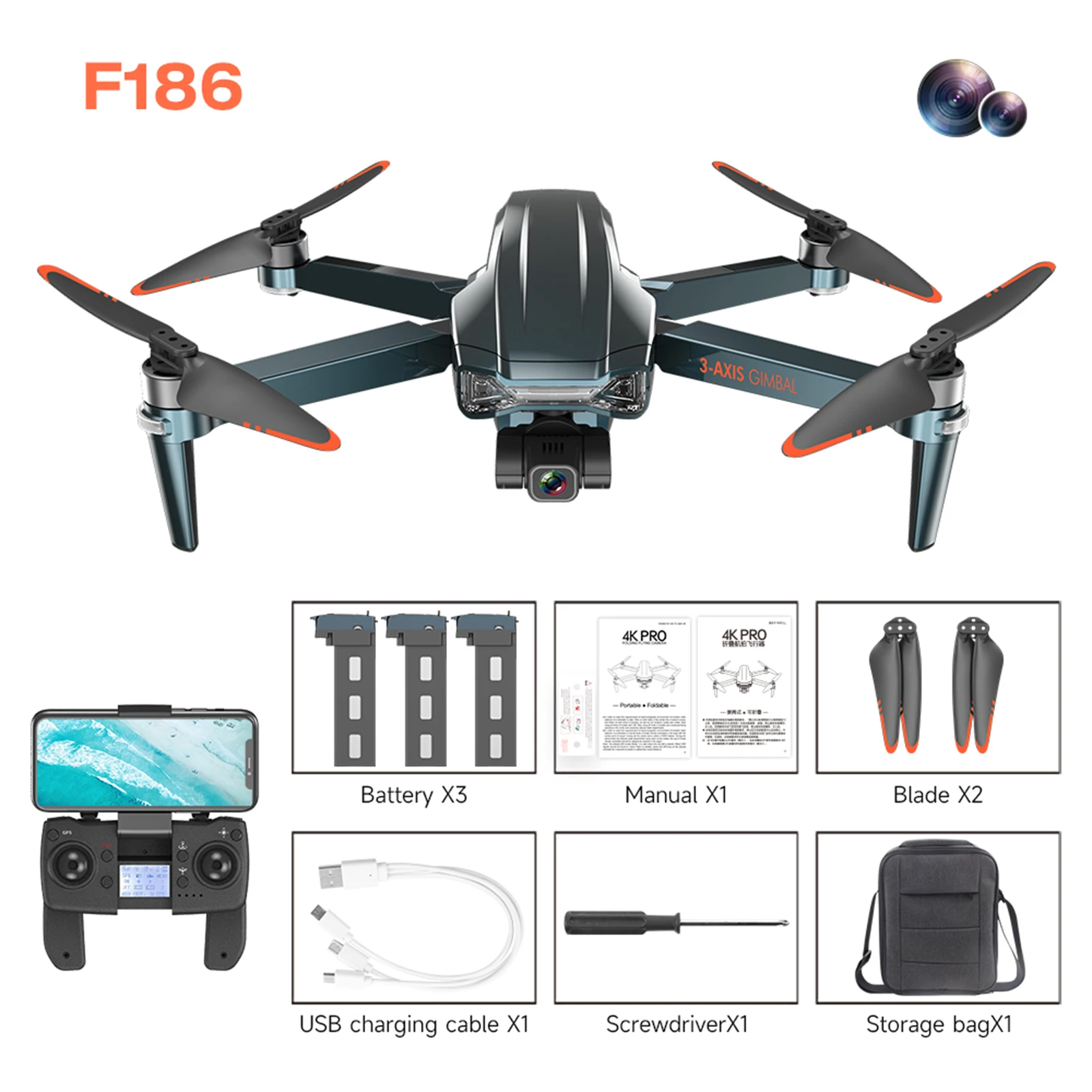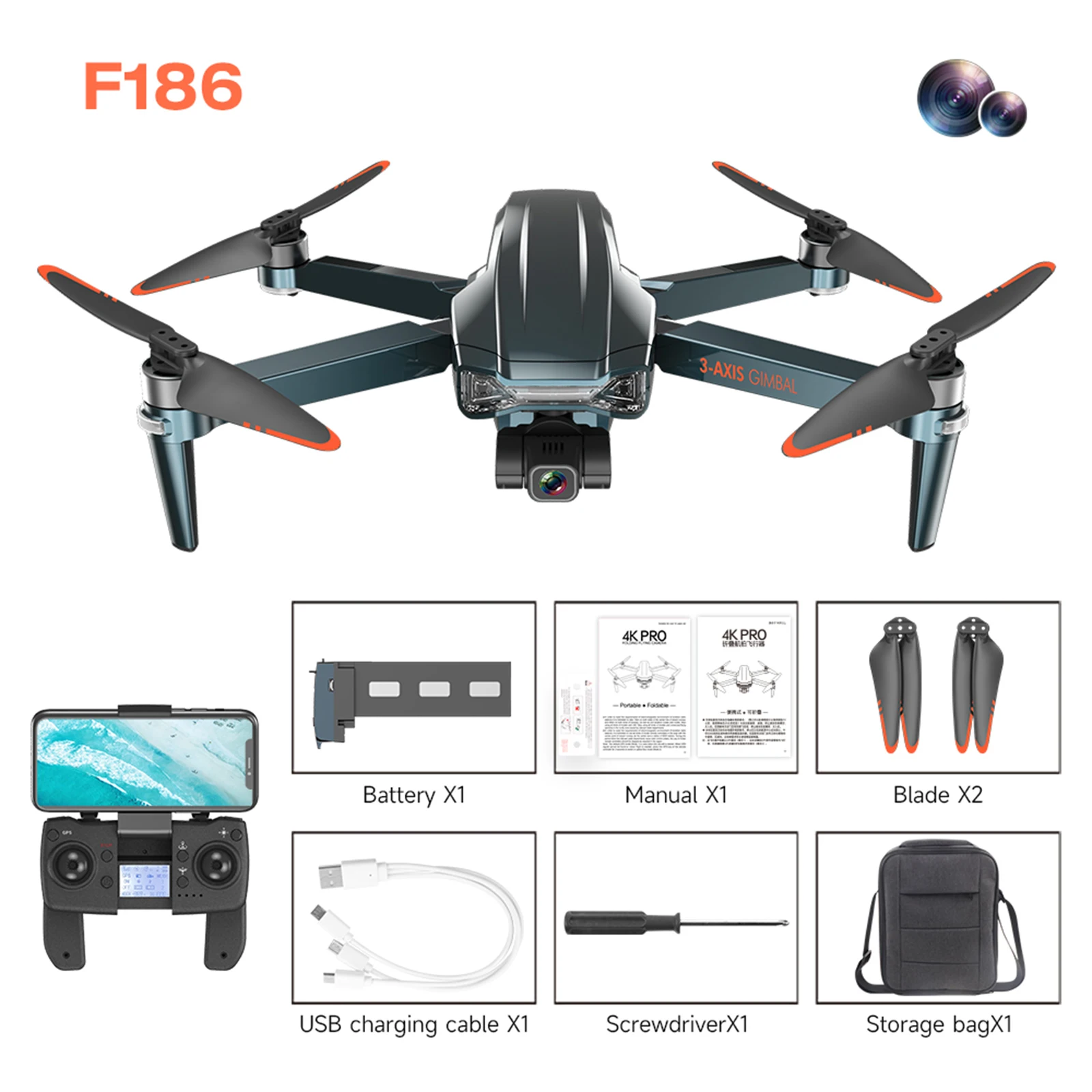 1. 5G FPV transmission 4K camera: F186 is equipped with 4K Ultra HD camera to capture wonderful moments with incredible details. 50X zoom, 90° lens angle adjustment up and down, 5GHz FPV technology ensures farther and smoother image transmission.