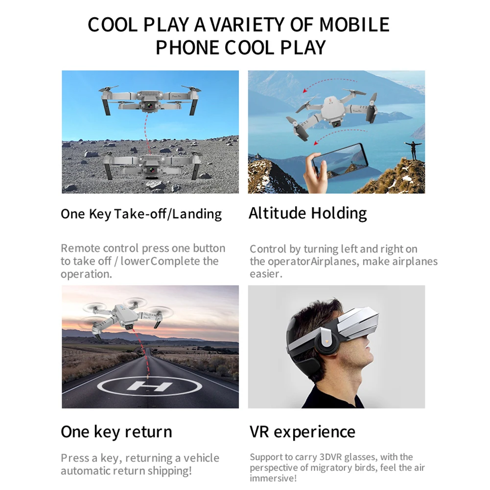 LSRC E88 Mini Drone FPV 4K HD Wide Angle Daul Camera Portable 2.4GHz Foldable Remote Control Drones