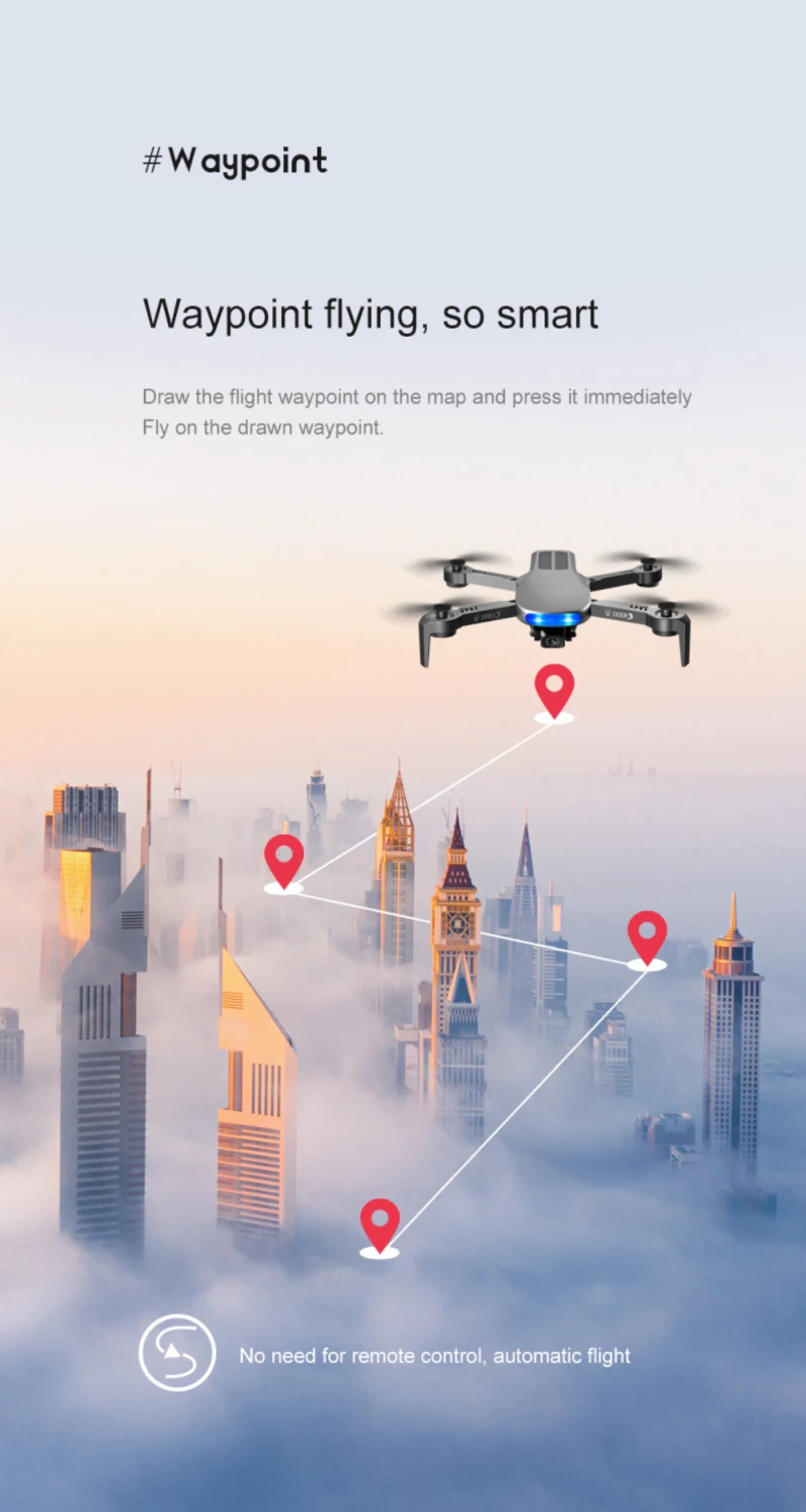 Wifi GPS intelligent positioning, the global navigation satellite system (GPS) is applied to unmanned aerial vehicle (UAV), and satellite signals are automatically transmitted, so that one-button return, low-power return and over-distance return can be easily realized, and the UAV will not be afraid of being lost no matter how far it flies.