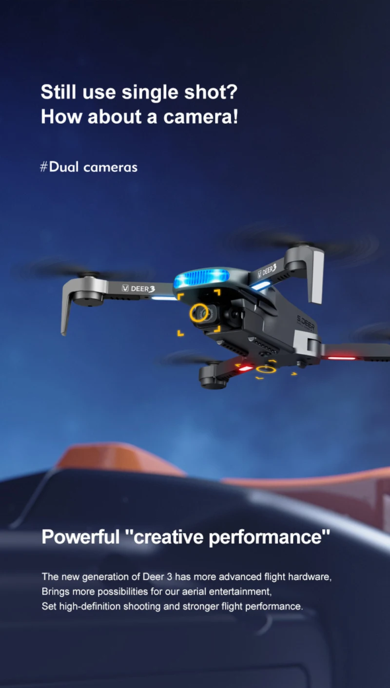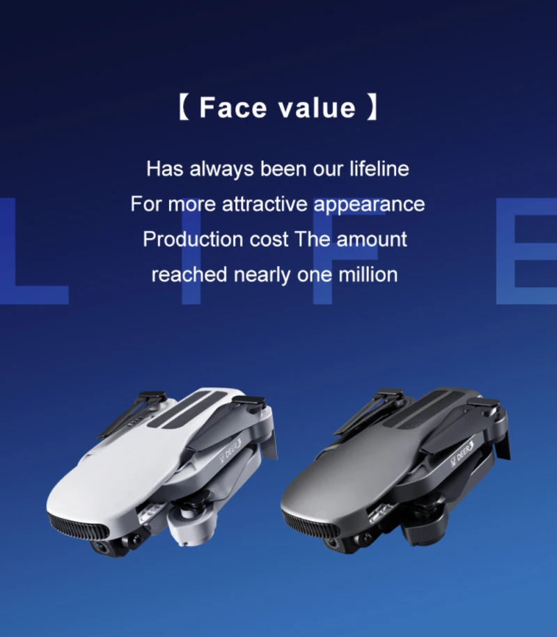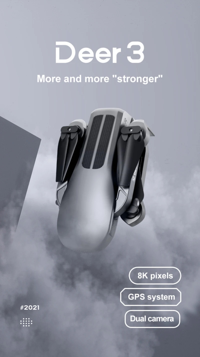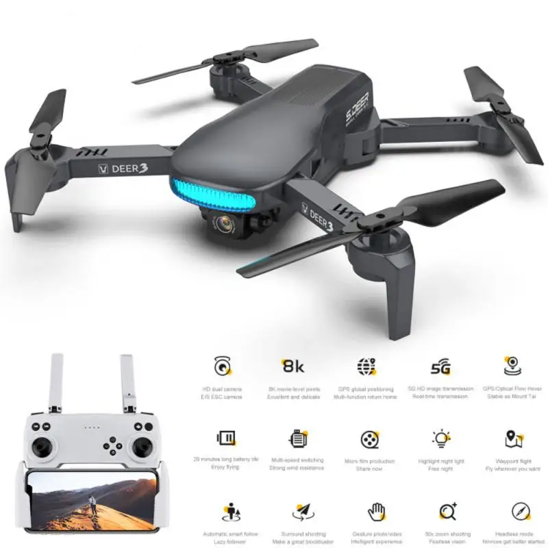 Features: 8K electronically controlled camera, 25-minute battery life, GPS intelligent positioning, fixed-point hovering/indoor and outdoor flight, intelligent following, 360-degree circling flight, intelligent waypoint flight, headless mode, one-button take-off/landing, 5G high-definition image transmission, gesture photography/video recording, creative MV production, intelligent APP control, multi-speed control, and foldable fuselage.