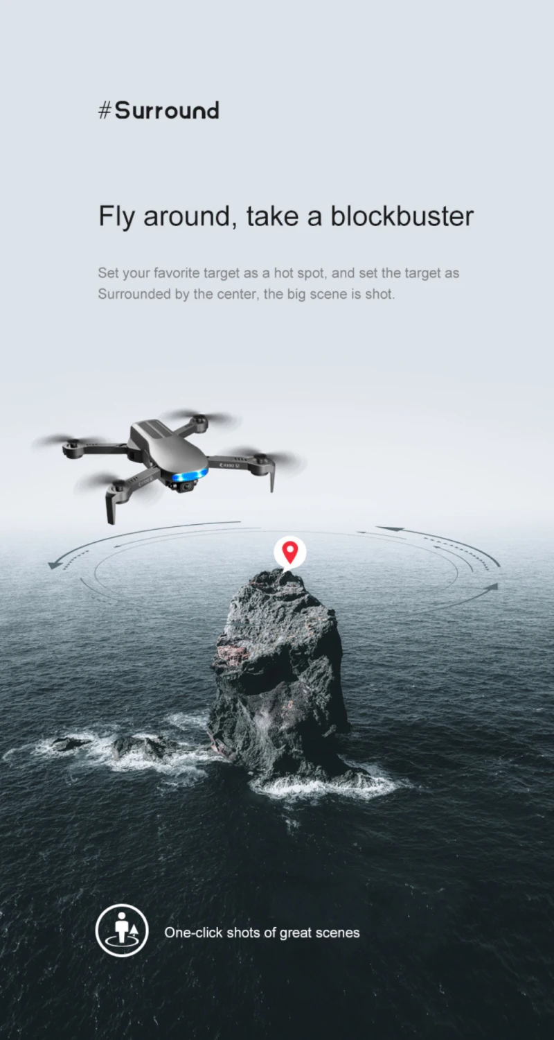 Set your favorite target as a hot spot, surround with the target as the center, fly around and shoot a big scene.