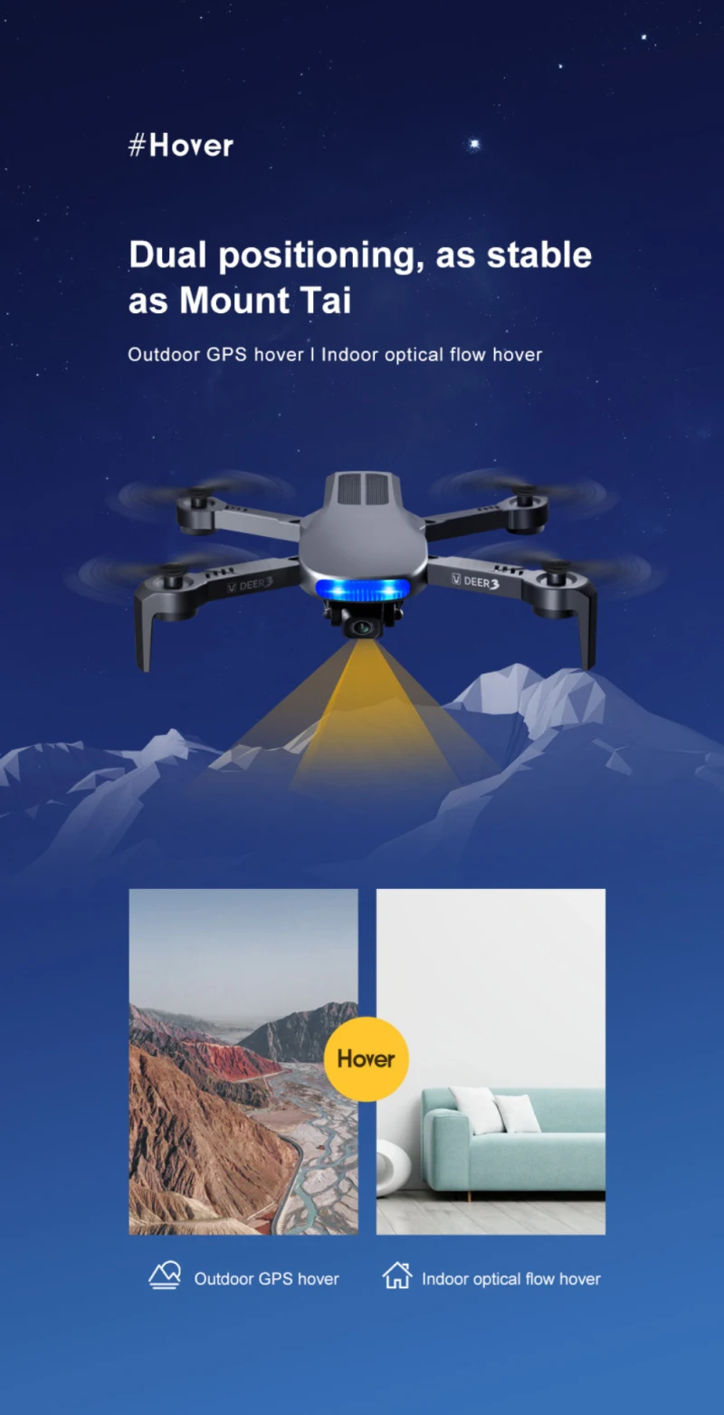 Optical flow dual positioning, outdoor GPS hovering, indoor optical flow hovering, dual positioning, more stable.