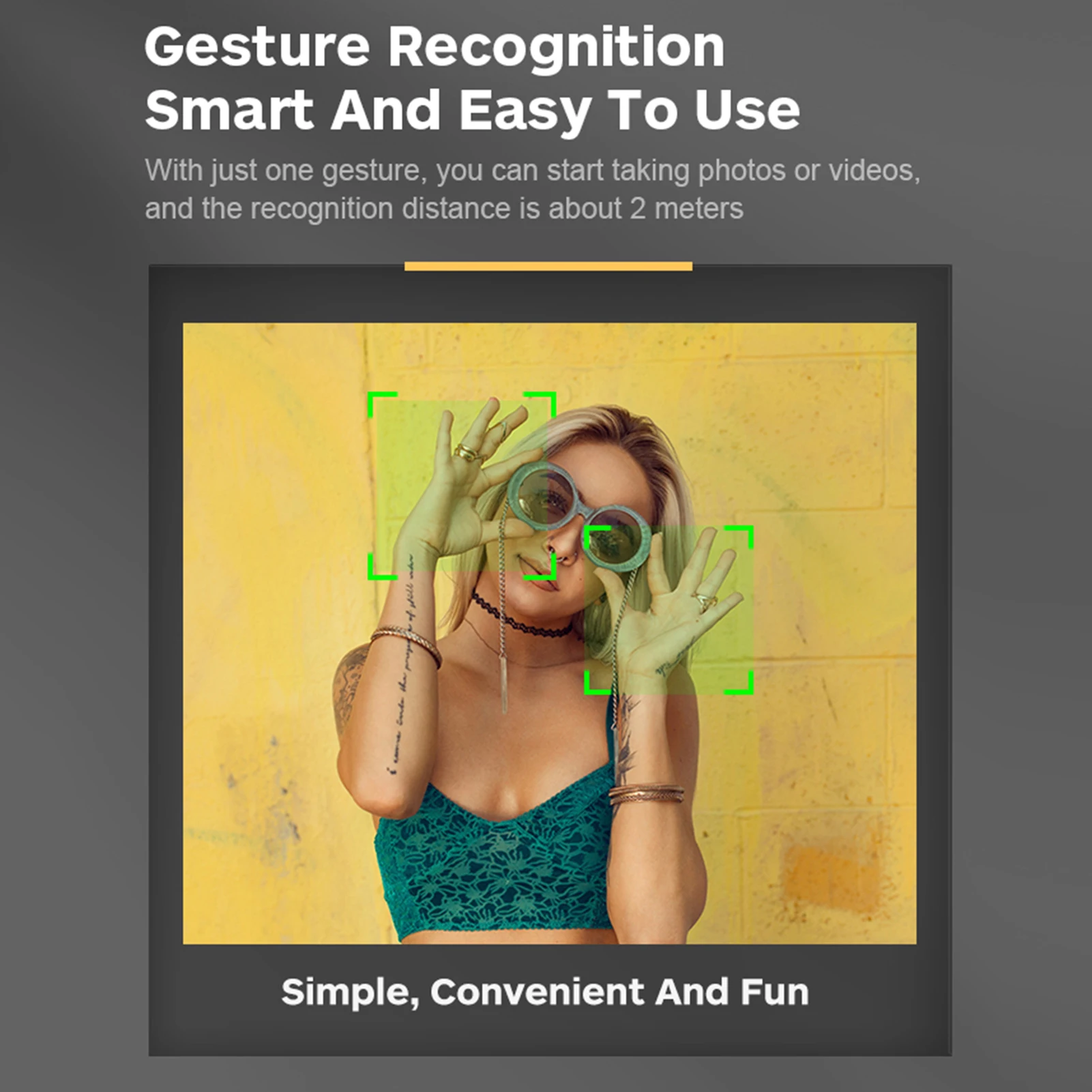 Gesture Control Mode: Allows you to order the camera to take a photo or record a video by just doing relative hand gesture.