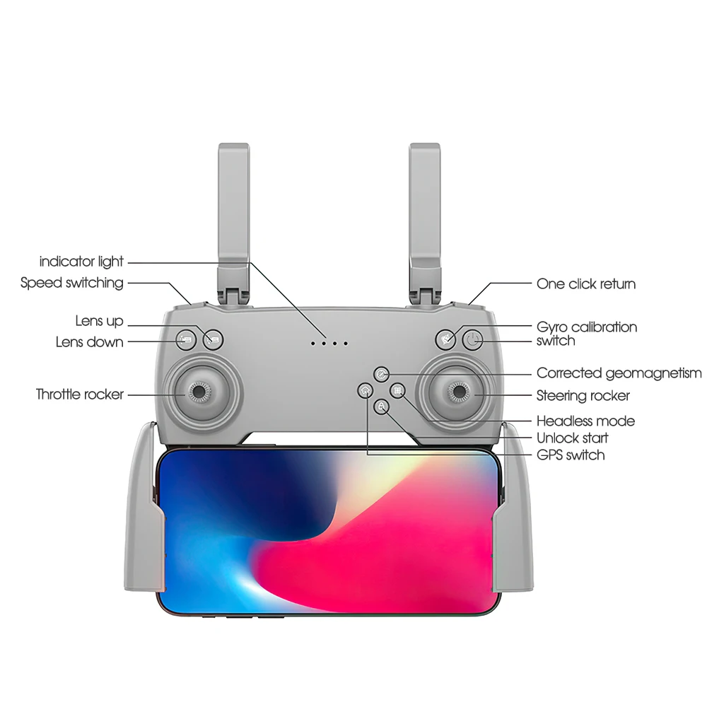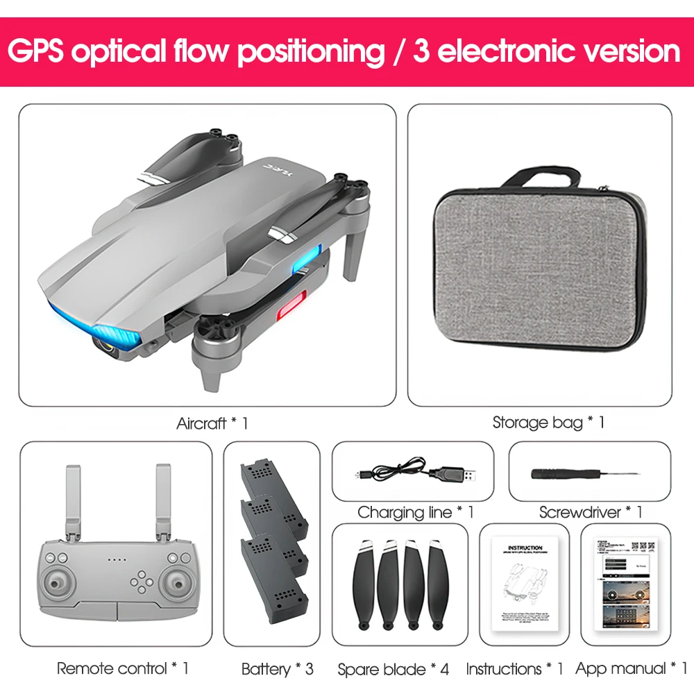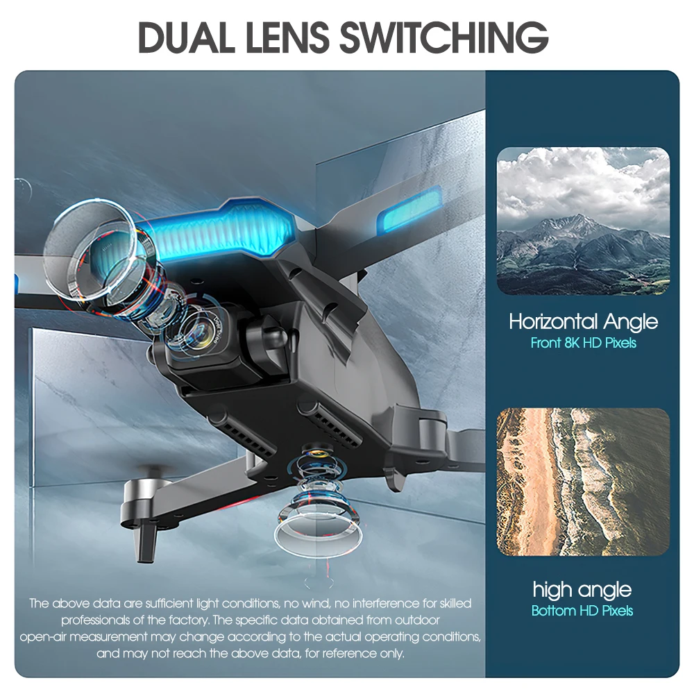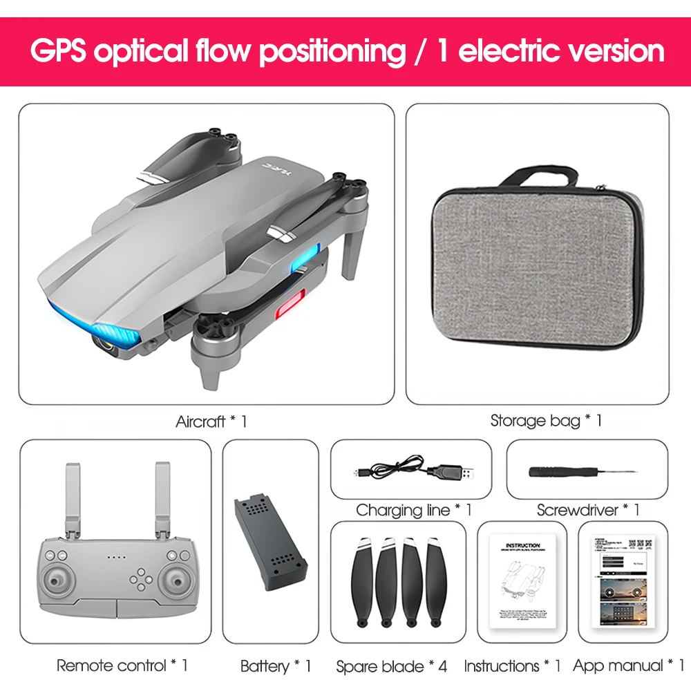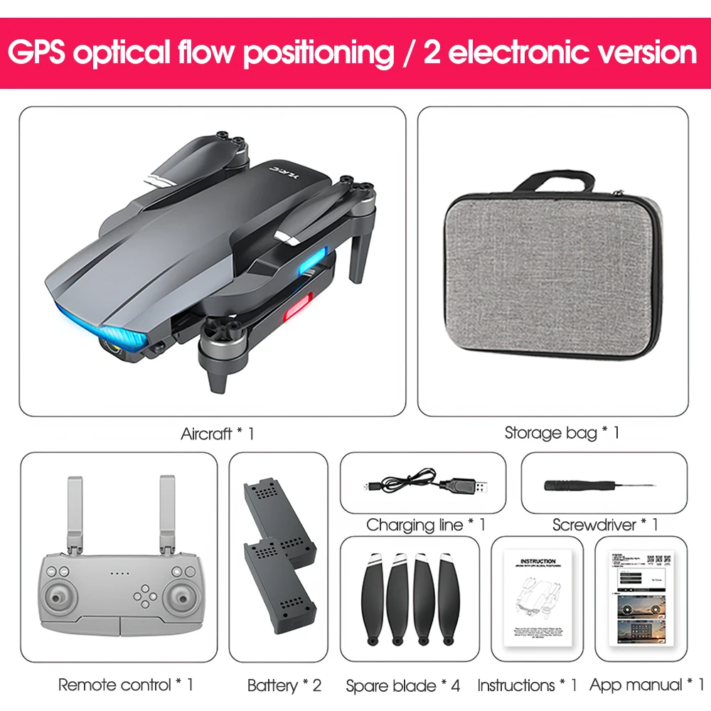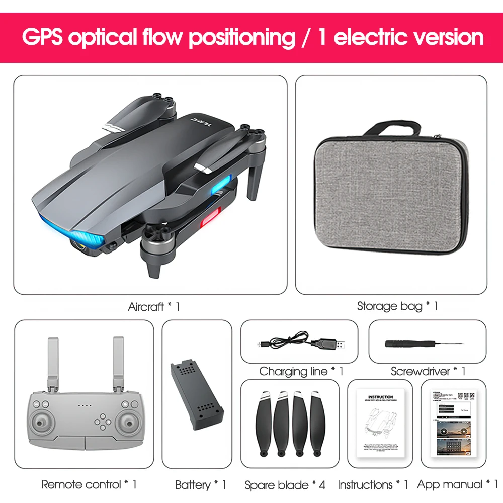 Electric adjustable WIFI professional aerial camera: 4K/6K HD WIFI is placed on the front lens, and the HD WIFI with optical flow at the bottom can switch the shooting angle, accurate positioning, long battery life, low power consumption/out-of-control/super long-distance return, intelligent follow-up , Fly around the point, double-fold (fan blades, wings), APP mobile phone control, custom route, one-key return, ascent and descend, forward and backward, left and right side flying, headless mode, automatic switching optical flow/GPS