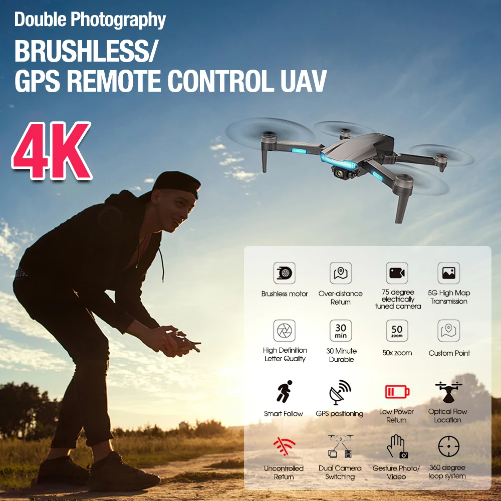 S106 Drone 4K Professional Dual Camera GPS Position 5G WIFI ESC Cam RC Dron Aerial Photography Brushless Motor Quadcopter Toys