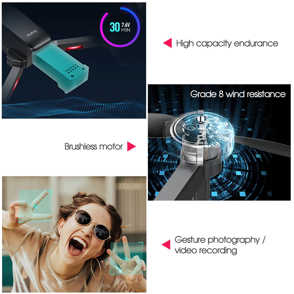 -Follow me. No matter where you go, the drone will automatically track and capture you. Take photos at any time, easily take complex photos, and provide self-portrait and hands-free flight functions.