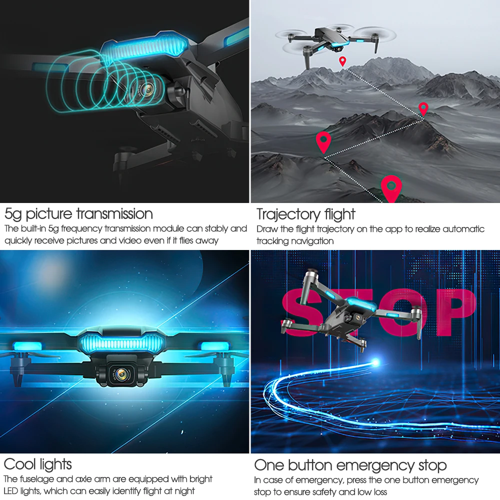Electric adjustable WIFI professional aerial camera: 4K/6K HD WIFI is placed on the front lens, and the HD WIFI with optical flow at the bottom can switch the shooting angle, accurate positioning, long battery life, low power consumption/out-of-control/super long-distance return, intelligent follow-up , Fly around the point, double-fold (fan blades, wings), APP mobile phone control, custom route, one-key return, ascent and descend, forward and backward, left and right side flying, headless mode, automatic switching optical flow/GPS