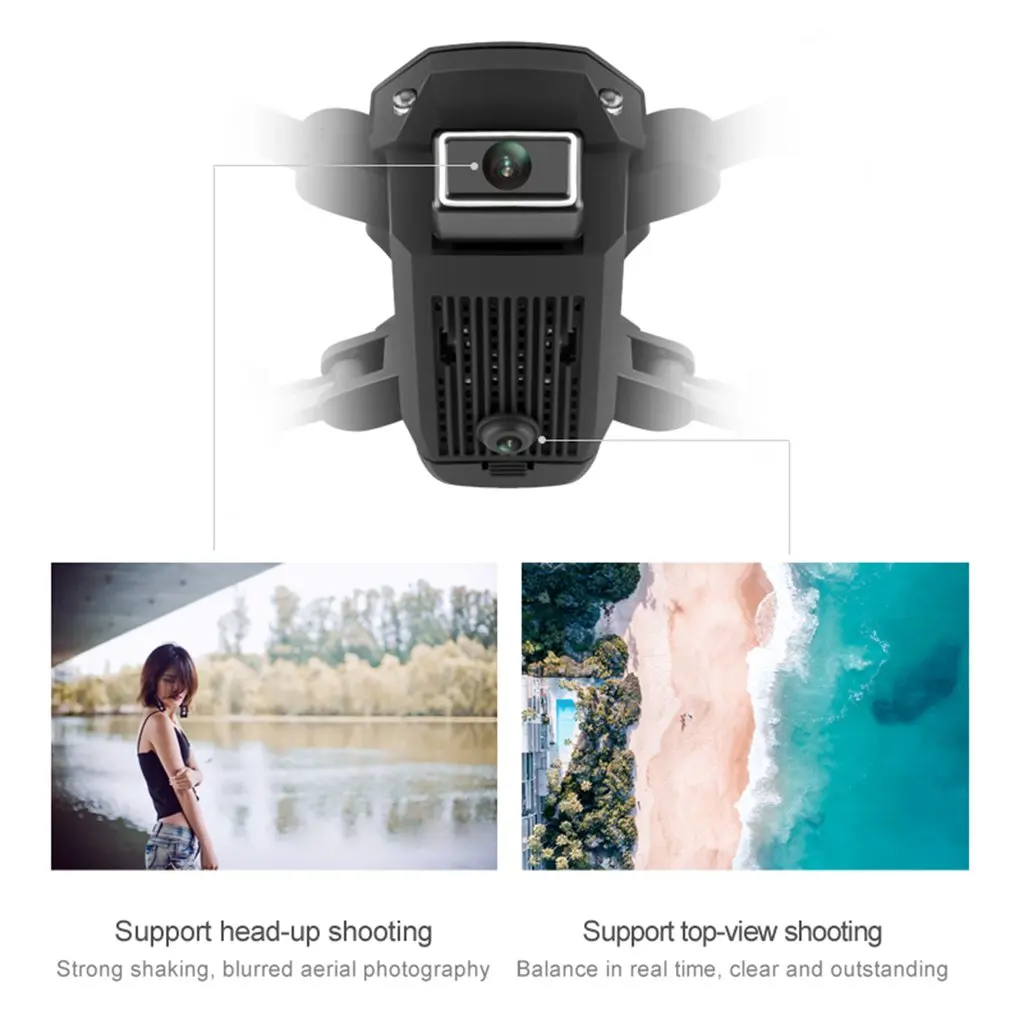 3. The front is equipped with a 4K ultra-clear wide-angle camera, and the bottom is equipped with a high-definition camera. The front camera can be controlled freely through the remote control at 30″ support The angle of view can be switched freely, and the aerial photography range is wider.