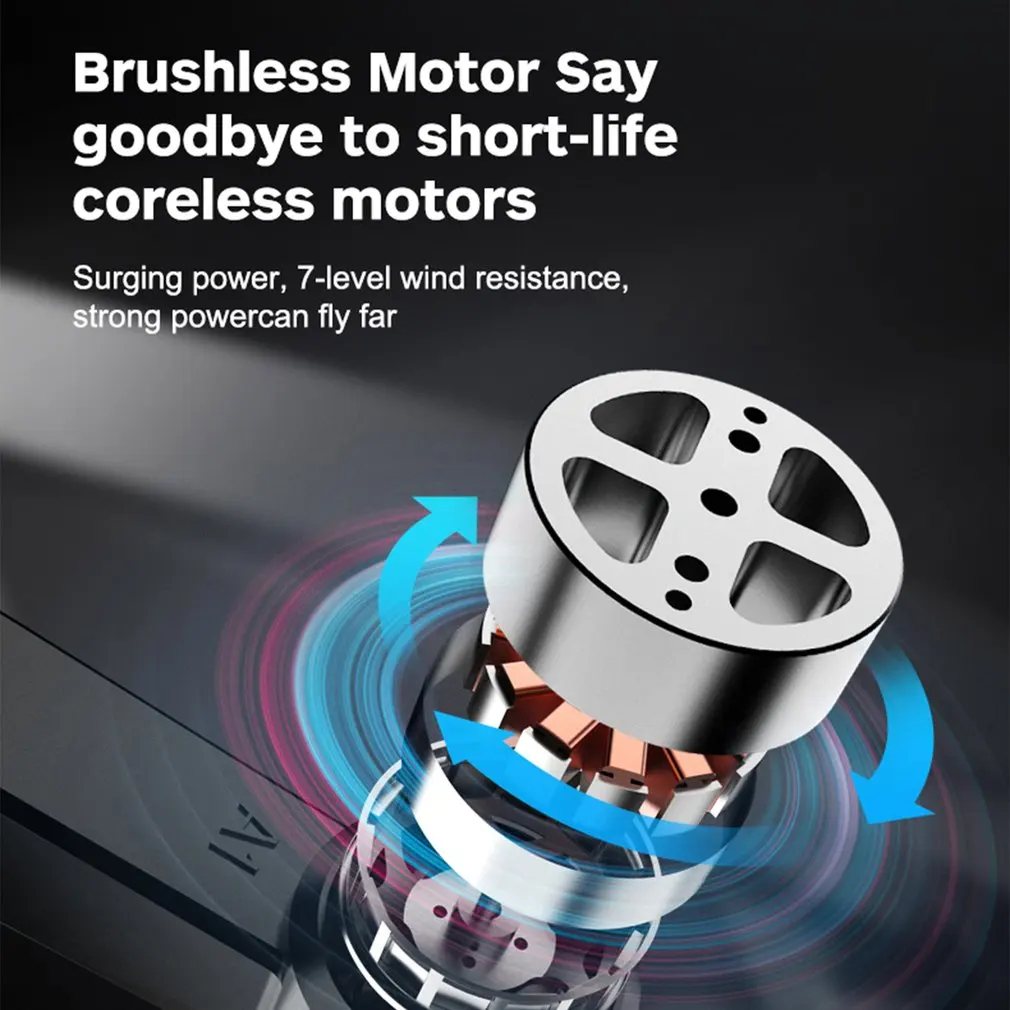5. The brushless motor has surging power, 7-level wind resistance, and strong power can fly far.